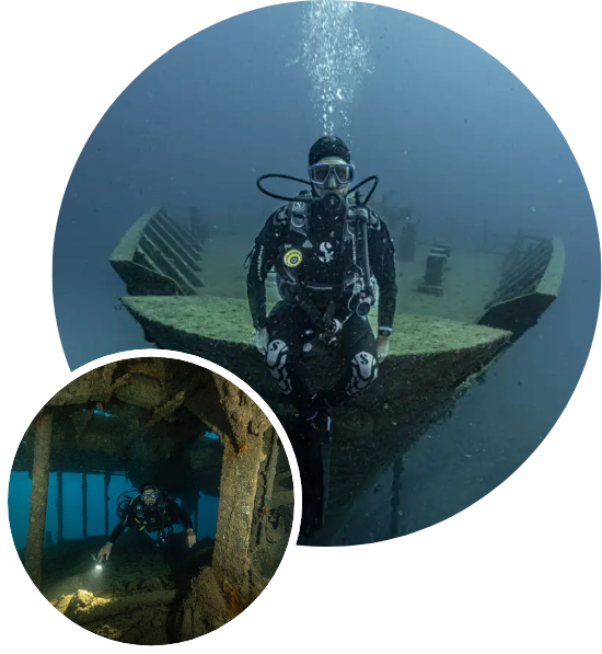 The SSI Advanced Wreck Diver course is designed for experienced divers who want to perfect their penetration planning, master the advanced use of guide lines, and consolidate their buoyancy control within the light zone in overhead environments.